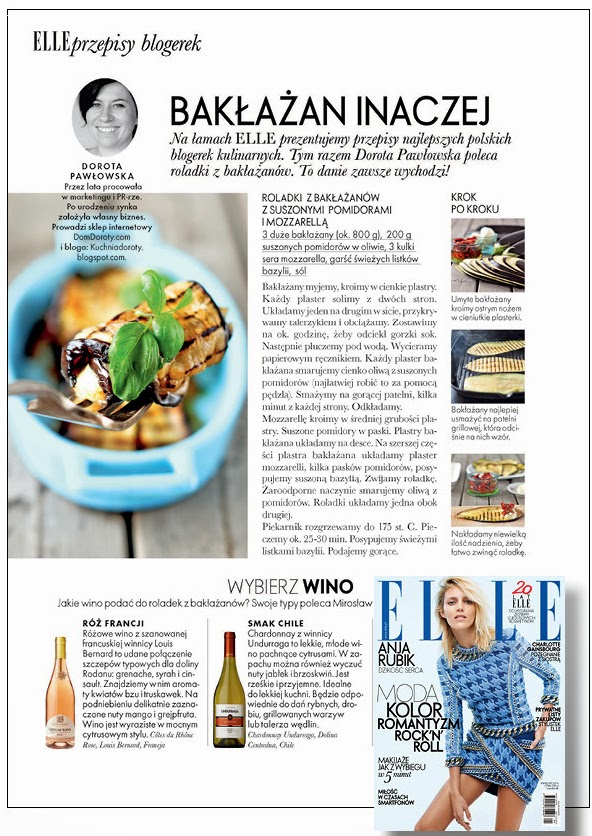 Zapraszam Was do kwietniowego wydania miesięcznika ELLE, znajdziecie tam mój przepis na bakłażanowe roladki. Zapraszam 🙂