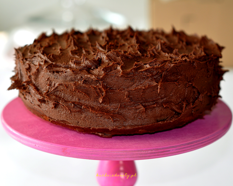 Ciasto ma dość zwartą konsystencję i naprawdę żółtawy kolor, który podkreśla ciemna, czekoladowa pomada. Można upiec je dzień wcześniej, zimne przechowywać w szczelnym pojemniku nawet do 2 dni. Ciasto przełożone masą przechowujemy w lodówce a przed podaniem wyjmujemy ok. 10 min wcześniej, żeby polewa była miękka.