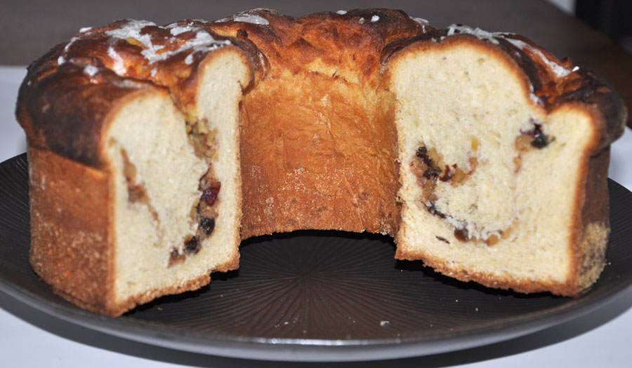Zrobiłam to wszystko. A później nie pozostało mi nic innego jak upiec moje ukochane ciasto drożdżowe z bakaliami. Pachniało pięknie i bardzo wyrosło.