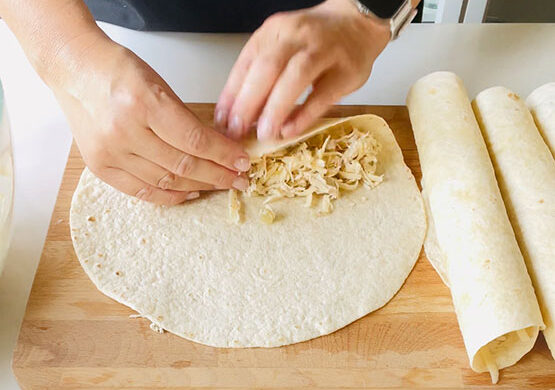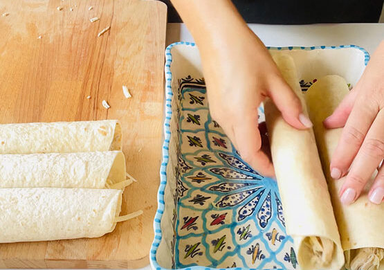 Tradycyjne enchilady to tortille, które napełniamy mięsem kurczaka i startego sera, a następnie zwijamy i zalewamy sosem enchilada. Potem wszystko obsypujemy świeżą kolendrą, można dodać kawałki avocado.