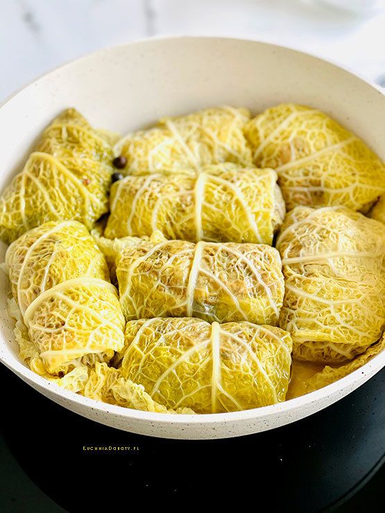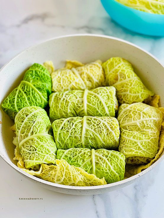 Wodę z gotowania kapusty solimy, zalewamy nią gołąbki. Można przykryć je liśćmi kapusty, ale nie jest to konieczne.