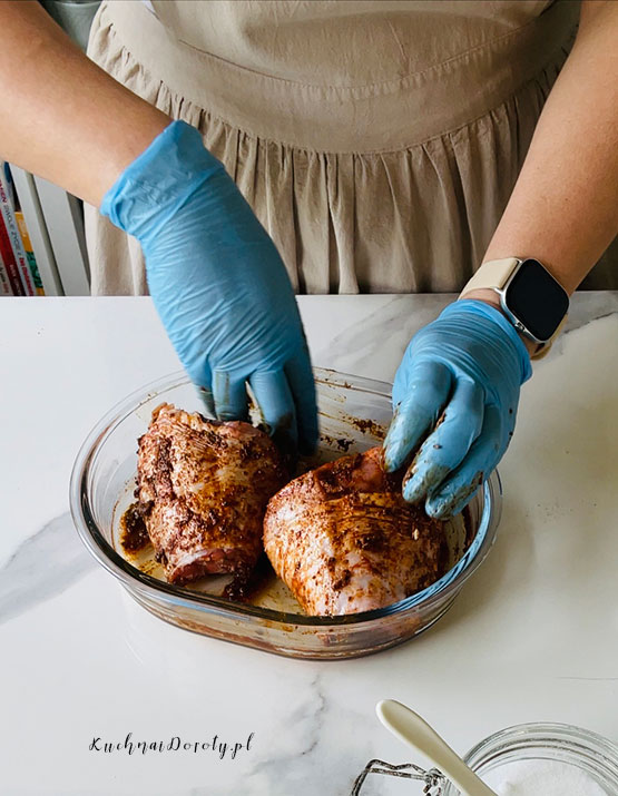 Mięso marynowane min 12h jest znacznie smaczniejsze, dlatego zdecydowanie polecam pozostawienie przyprawionego mięsa na noc w lodówce. Ta zasada dotyczy każdego rodzaju mięsa.
