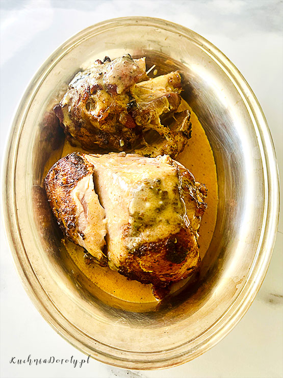 Przygotowanie tego dania zawsze rozkładam na dwa dni, jednego marynuję mięso, drugiego piekę indyka i przygotowuję sos.