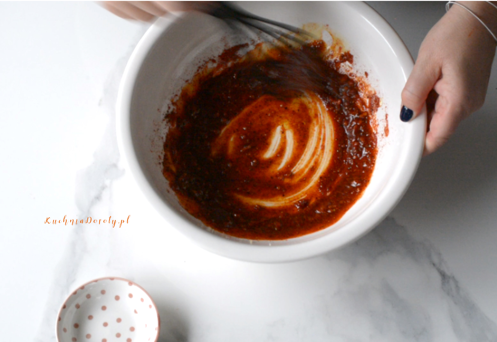 Dodaję oliwę i robię mieszam. Powstanie gęsta marynata.