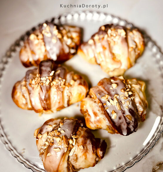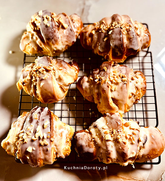 Wystudzone rogale smaruję lukrem i posypuję posiekanymi orzechami.