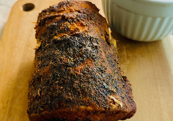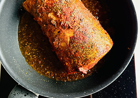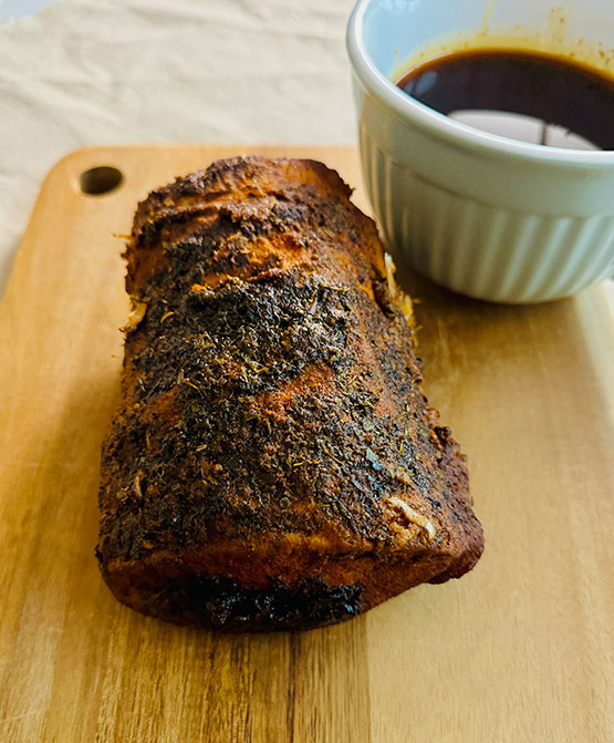 Schab jest bardzo dobrze doprawiony, aromatyczny i bardzo smaczny.