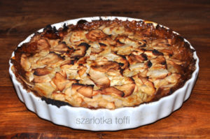 W naszej rodzinie najlepszą tradycyjną szarlotkę robi moja siostra i trudno się z nią w tej dziedzinie ścigać, dlatego ja robię różne wariacje na temat kruchego ciasta z jabłkami. Tym razem wspacie zanalazłam w przepisie Jamiego Olivera z książki ,,Moje obiady”. Trochę przepis zmieniłam,co nieco dodałam i wyszła bardzo przyjemna i pięknie pachnąca szarlotka toffi. Polecam.