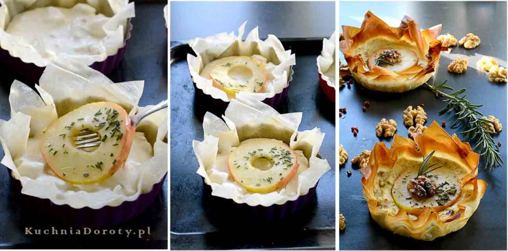 Dzisiaj dzielę się z Wami moim ulubionym przepisem na tartaletki z ciasta filo z pleśniowym serem, orzechami i karmelizowanymi jabłkami.