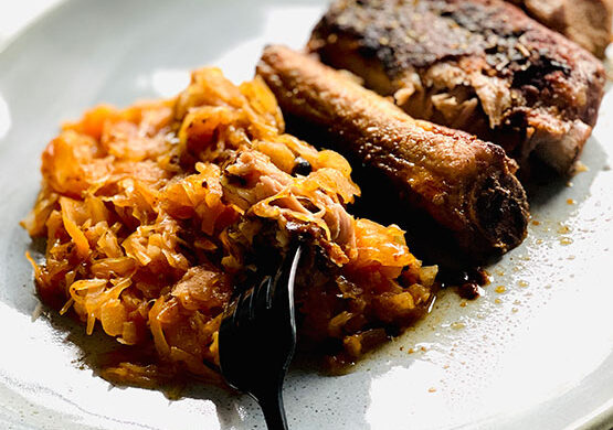 Kiedy kapusta się dusi, obsmażam żeberka.