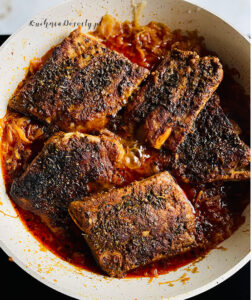 żeberek duszone z przyprawami,